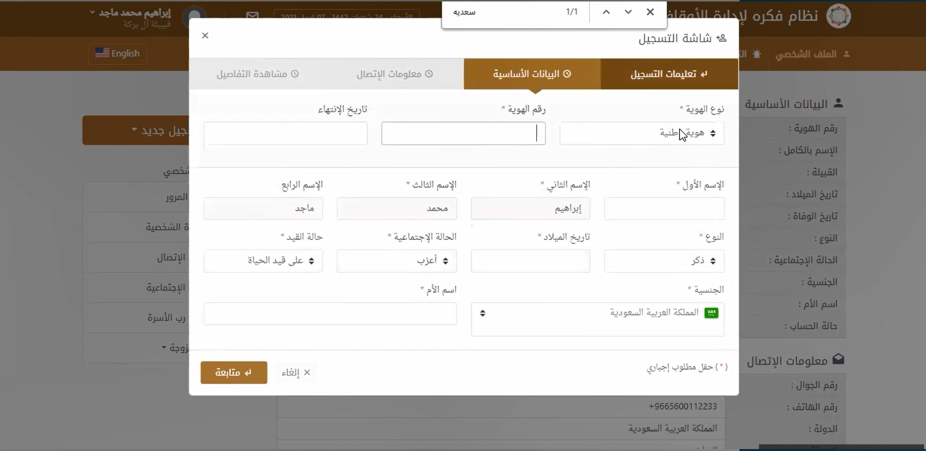 إمكانية البحث المتقدم بأي معلومة تمت كتابتها على البرنامج في أي وقت للعثور على البيانات والمستندات بسهولة وسرعة سواء بحثت باسم المستفيد أو رقم هويته أو أي بيانات خاصة بملفه على البرنامج أو حتى تاريخ إضافة ملفه الخاص وغيرها الكثير من البيانات والمعلومات الأخرى التي يمكن من خلالها الوصول السريع لأي معلومة في أي وقت.