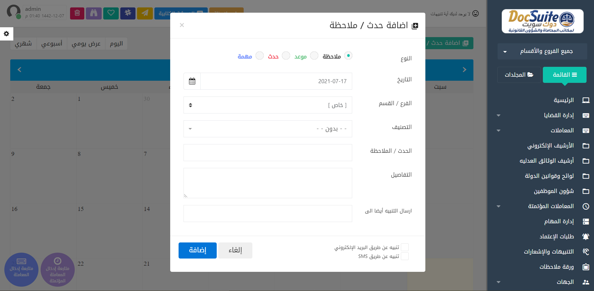 لقطات حية من نظام إدارة مكاتب المحاماة والقضايا