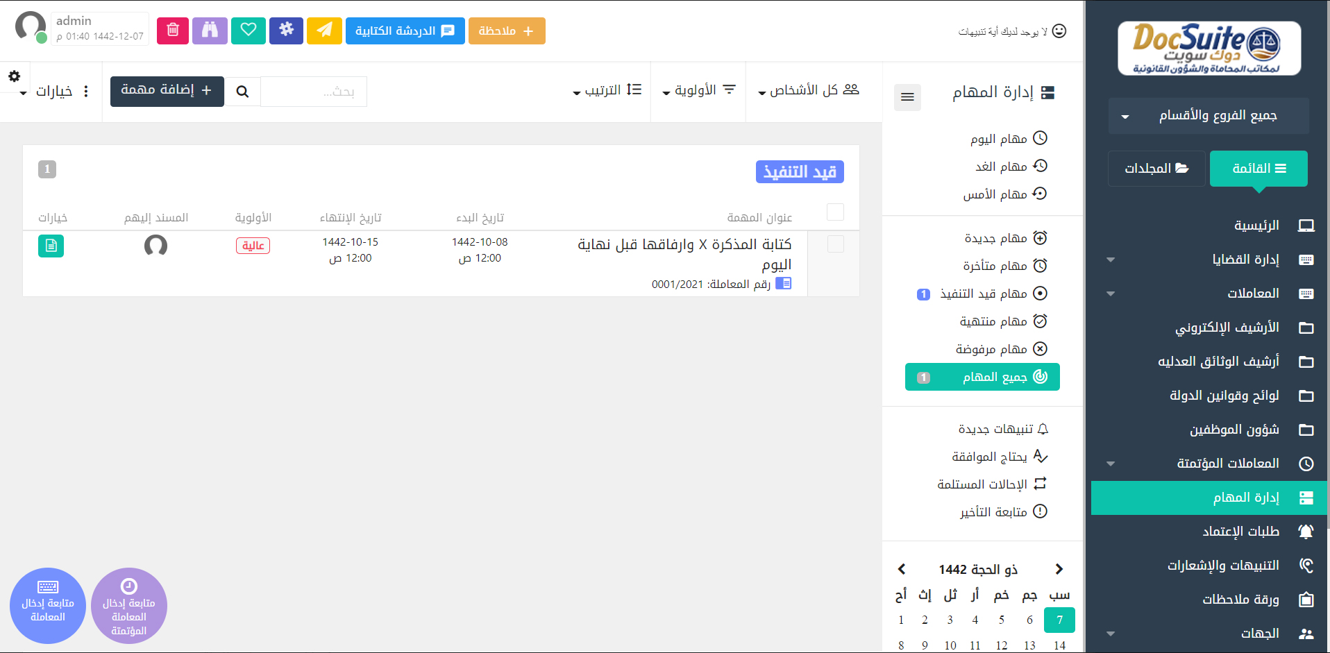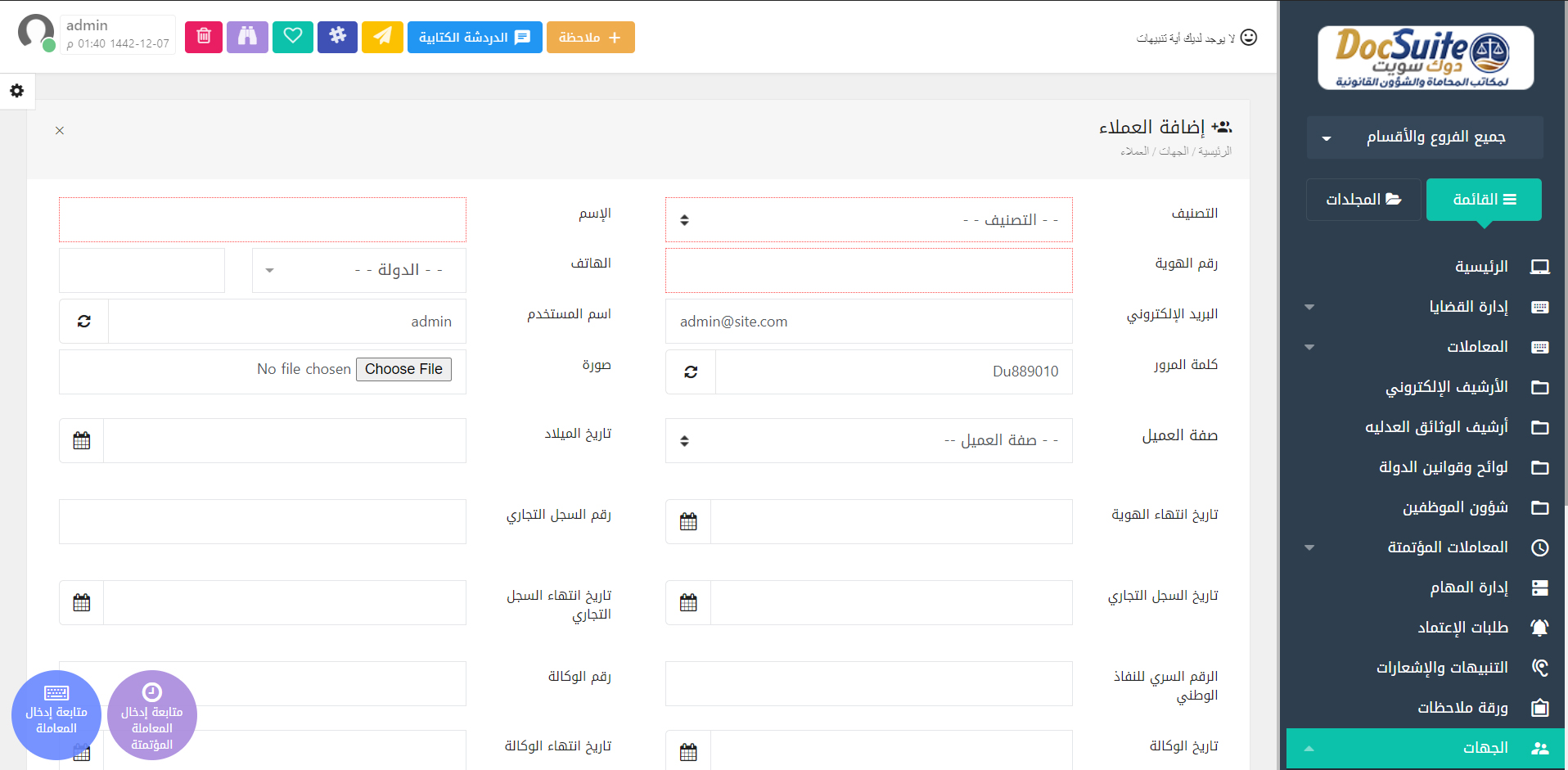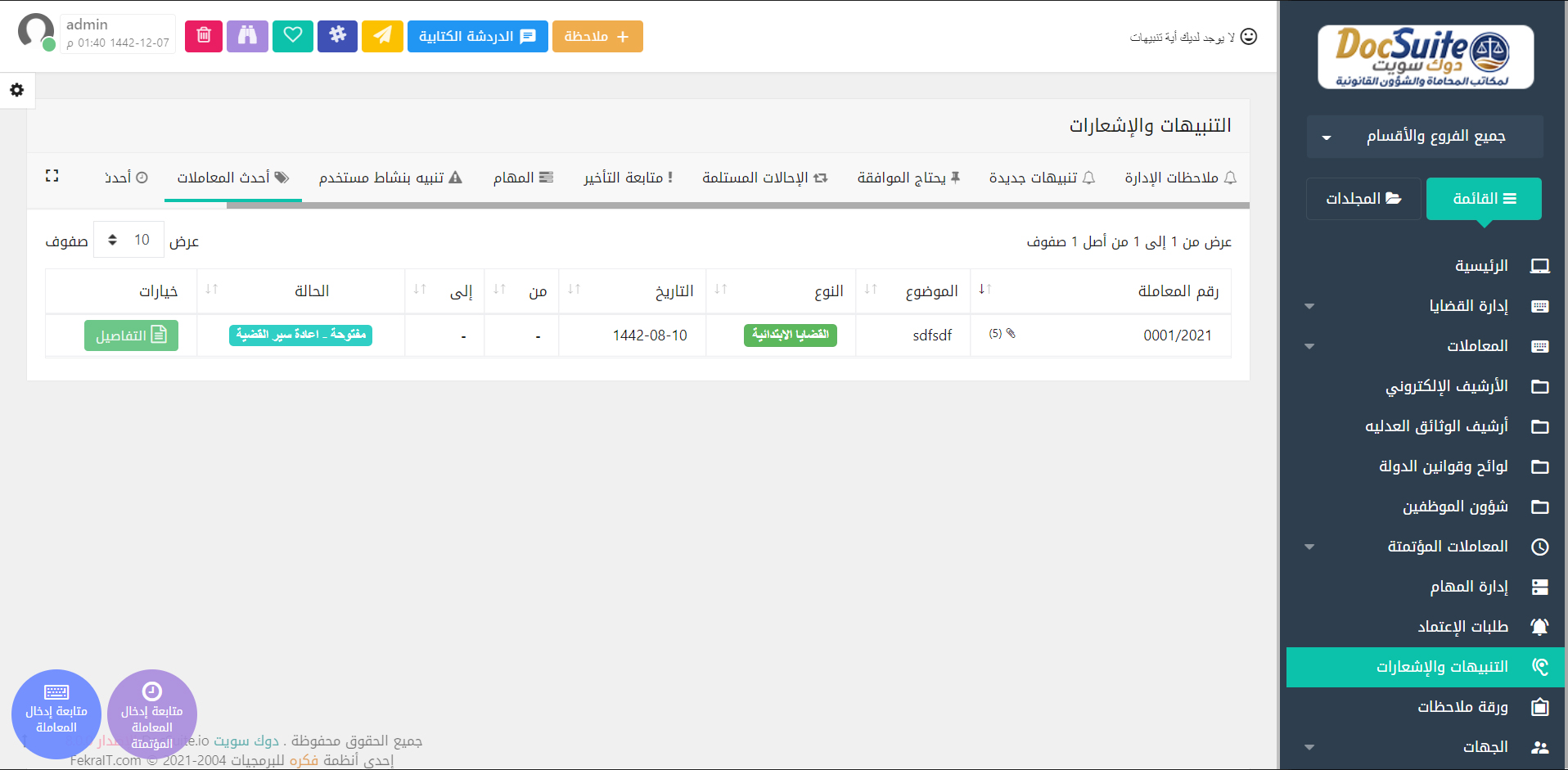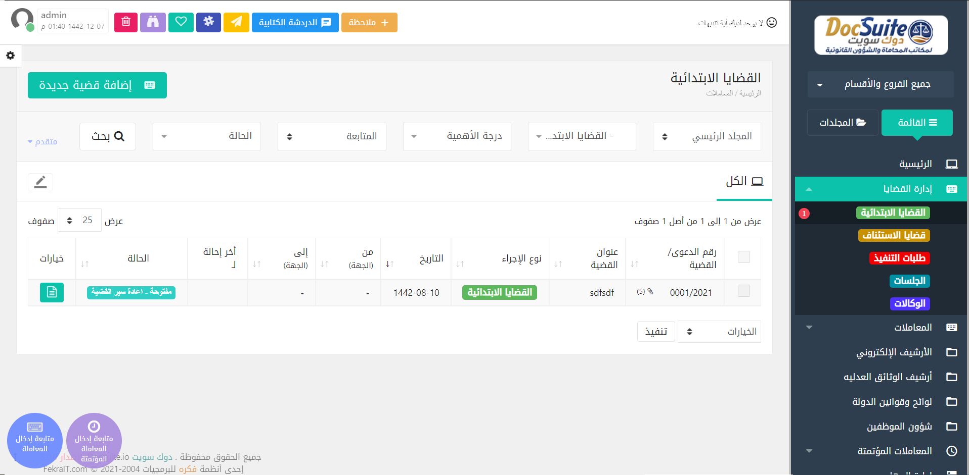 برنامج فكرة دوك سويت لإدارة مكاتب المحاماة والاستشارات