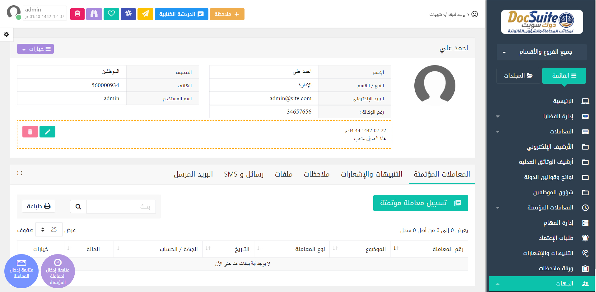 لقطات من برنامج إدارة مكاتب المحاماة والقضايا