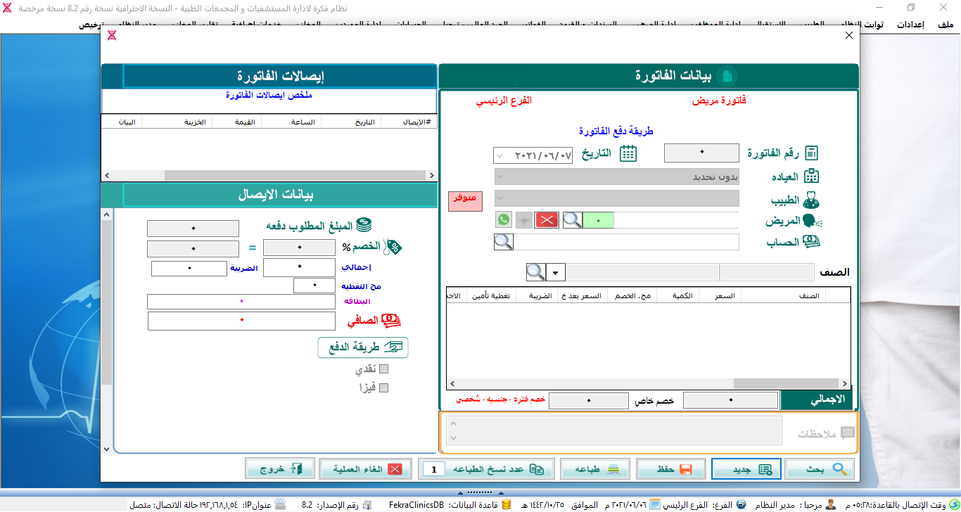 ليس هذا وفقط، بل السيطرة على كافة مدخلات ومخرجات العمل الخاص بالمنشآت والمراكز الطبية والعيادات والمستوصفات من أول استقبال المرضى وحتى استخراج الفواتير التي تدعم كافة أنواع الضرائب المعمول بها في منطقة تواجد منشأتك الطبية.