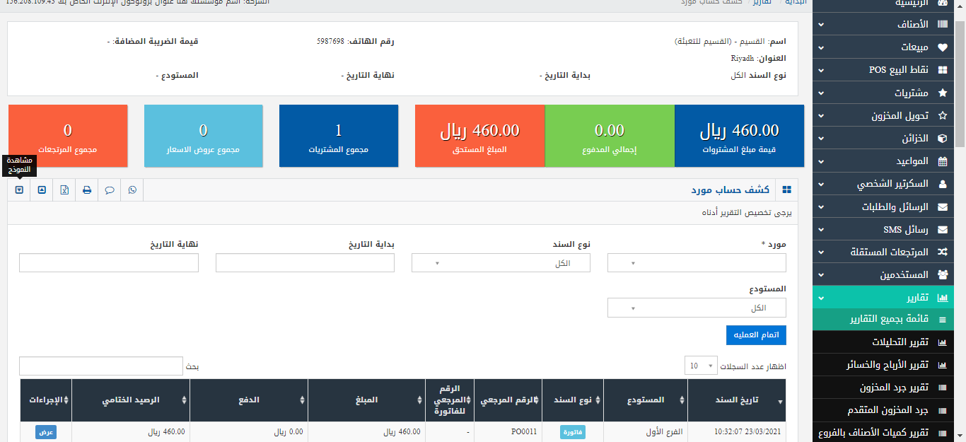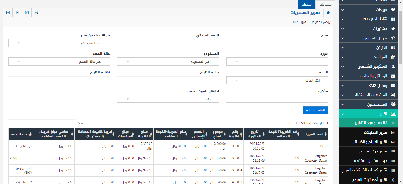 نظام مشتريات شامل ومُبتكر يسهل إدارة كل ما يــتــعــلــق بدورة المشتريات داخل محلك أو شركتك أو مؤسستك بداية من بيانات الموردين ومستحقاتهم وما تم دفعه وما تبقى من دفعات آجلة - هذا النظام يسجل ويصنف كل شيء تقوم بشراءه من مختلف المصادر والموردين بدقة.