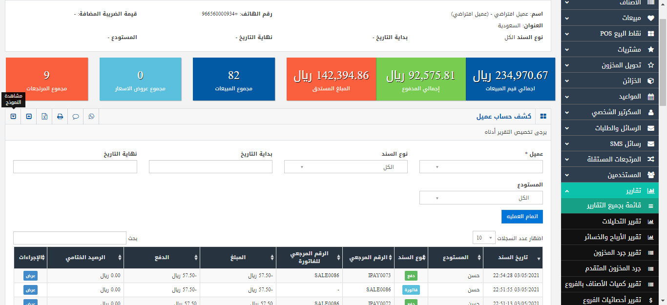 لقطات من نظام للمحاسبة وإدارة المخزون والمبيعات POS