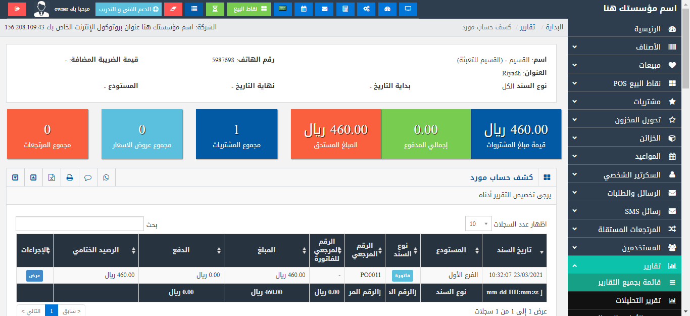 دعم التحكم في ومراقبة دورة المشتريات كاملة من أول إدارة بيانات الموردين والمستحقات المالية والدفعات الآجلة حتى تصنيف المشتريات في أقسامها.